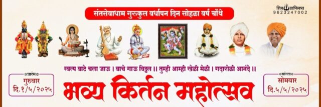 ब्राम्हणी – वांबोरी रस्त्यावरील ससे गांधले वस्ती येथे संत सेवाधाम वारकरी गुरुकुलच्या चौथ्या वर्धापन दिनानिमित्त गुरुवार 1 मे ते सोमवार 5 मे दरम्यान भव्य किर्तन महोत्सवाचे आयोजन करण्यात आले असल्याची माहिती संत सेवाधामचे प्रमुख हभप किशोर महाराज गडाख यांनी दिली.
