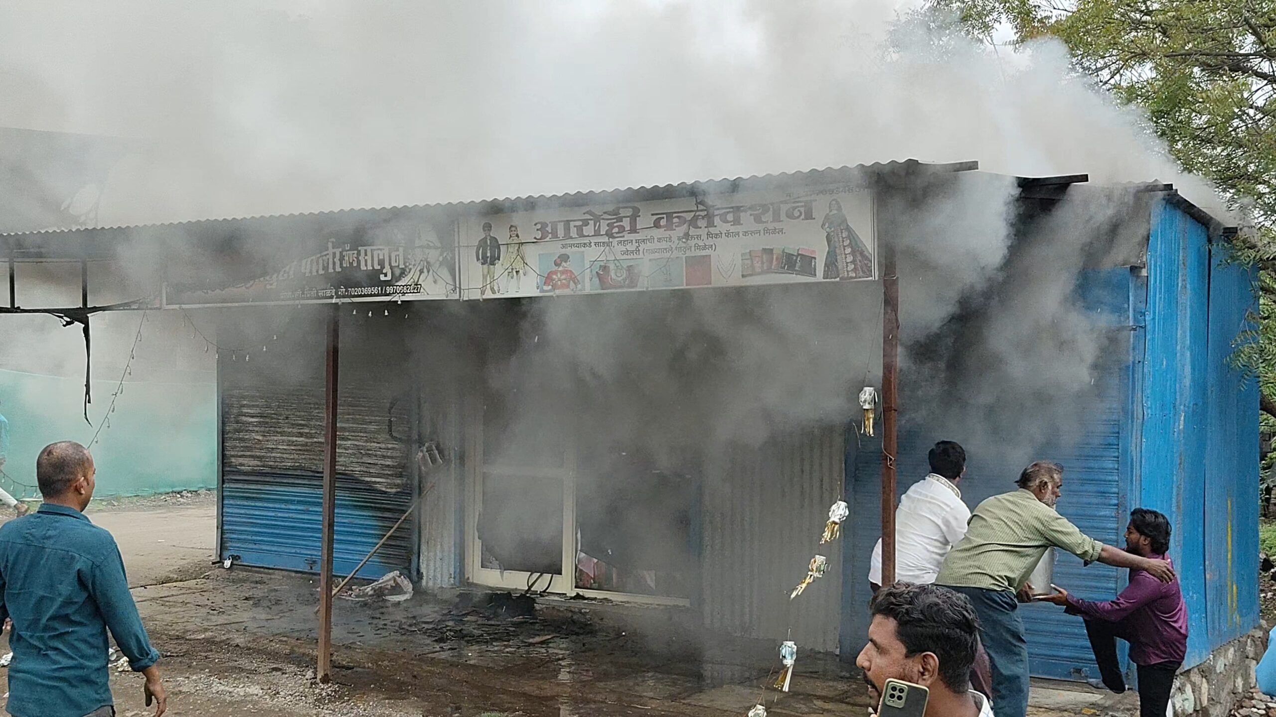 ही घटना शनिवार २४ मे रोजी दुपारच्या दरम्यान घडली आहे. या आगीत तीनही दुकानांचे लाखो रुपयांचे नुकसान झाले आहे.