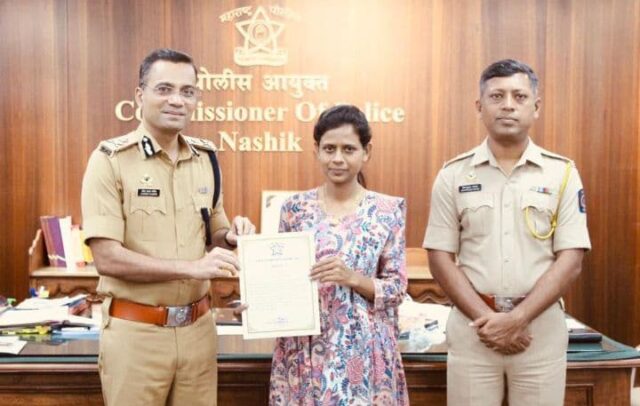 गणराज्य न्यूज नाशिक : निरीक्षण व बाल गृह, उंटवाडी येथून अपहरण झालेल्या एका अल्पवयीन पीडित मुलीला शोधून काढण्यात नाशिक शहर पोलिसांच्या गुन्हे शाखा युनिट २ ला मोठे यश आले आहे. अत्यंत आव्हानात्मक असलेल्या या गुन्ह्यात पोलिसांनी चिकाटी, तांत्रिक कौशल्य आणि गुप्त माहितीच्या आधारे तब्बल २४ दिवसांनी या मुलीला जेजुरी येथून सुखरूप ताब्यात घेतले. या अतुलनीय कामगिरीबद्दल पोलीस आयुक्त मा. श्री. संदिप कर्णिक यांनी संपूर्ण तपास पथकाचा सत्कार करून त्यांच्या पाठीवर कौतुकाची थाप दिली. या यशस्वी कामगिरीमुळे नाशिक पोलिसांच्या शिरपेचात आणखी एक मानाचा तुरा रोवला गेला असून, त्यांच्या कर्तव्यनिष्ठेचे सर्व स्तरातून कौतुक होत आहे.या पथकातील राहुरी तालुक्यातील ब्राम्हणी गावच्या सहाय्यक पोलीस निरीक्षक जया तारडे यांचाही समावेश असून वरिष्ठ पोलीस अधिकाऱ्यांच्या हस्ते त्यांचा सन्मान करण्यात आला.